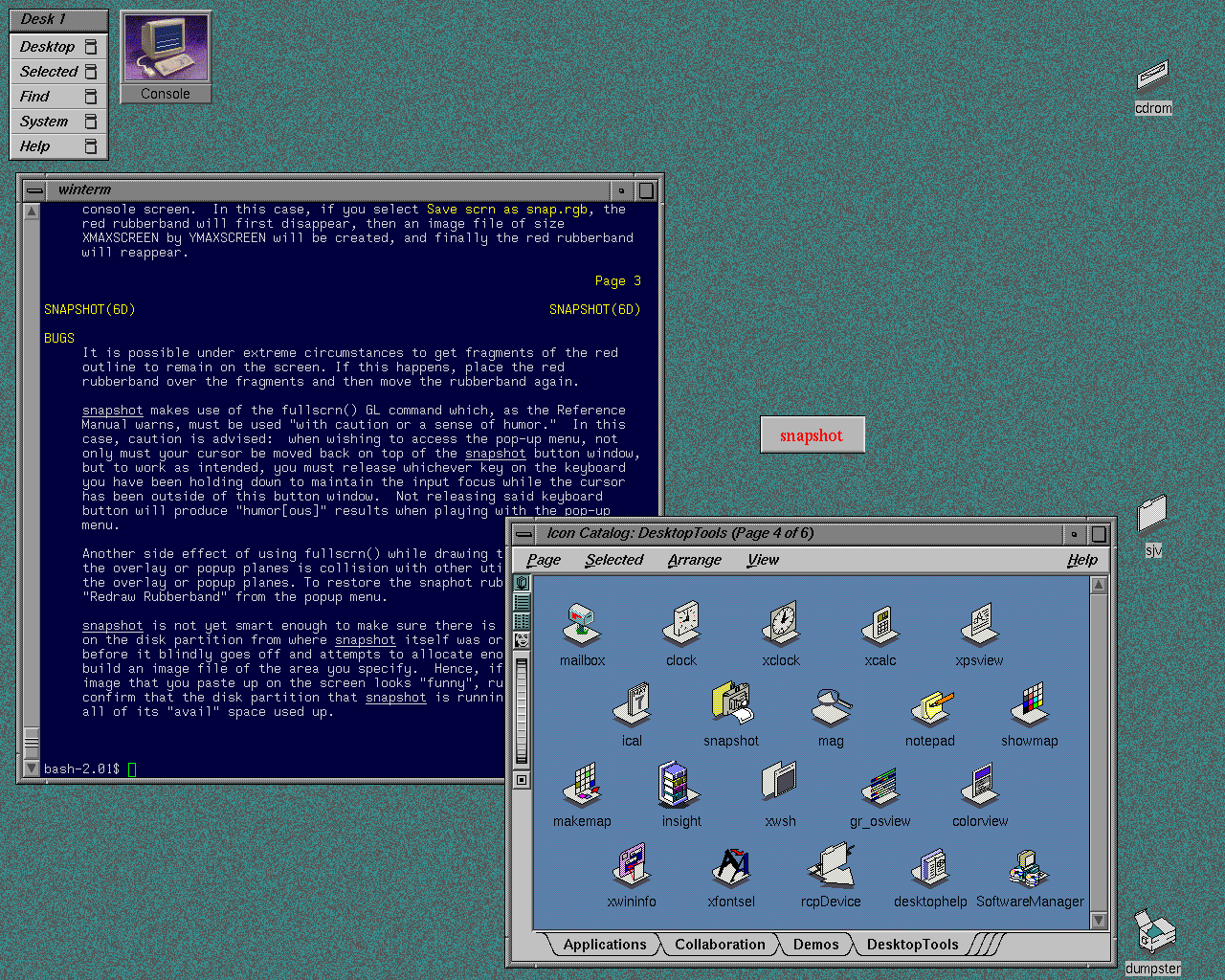 SGI implemented a very nice GUI on their machines on top of X, called Indigo Magic; they had a window manager called 4Dwm, and their machines were always very pretty. They used their own enhanced version of the Motif widgets. I finally have a screenshot, courtesy of Sam Varner.